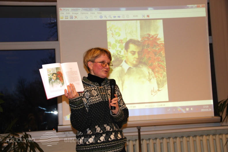 IMG4825.JPG Jolanta KriūnienėThumbnailsJ. Kriūnienė rodo tik šiam vertimui ir leidimui Iano Vorreso pasiūlytą paties portretą, tapytą Kunigaikštienės